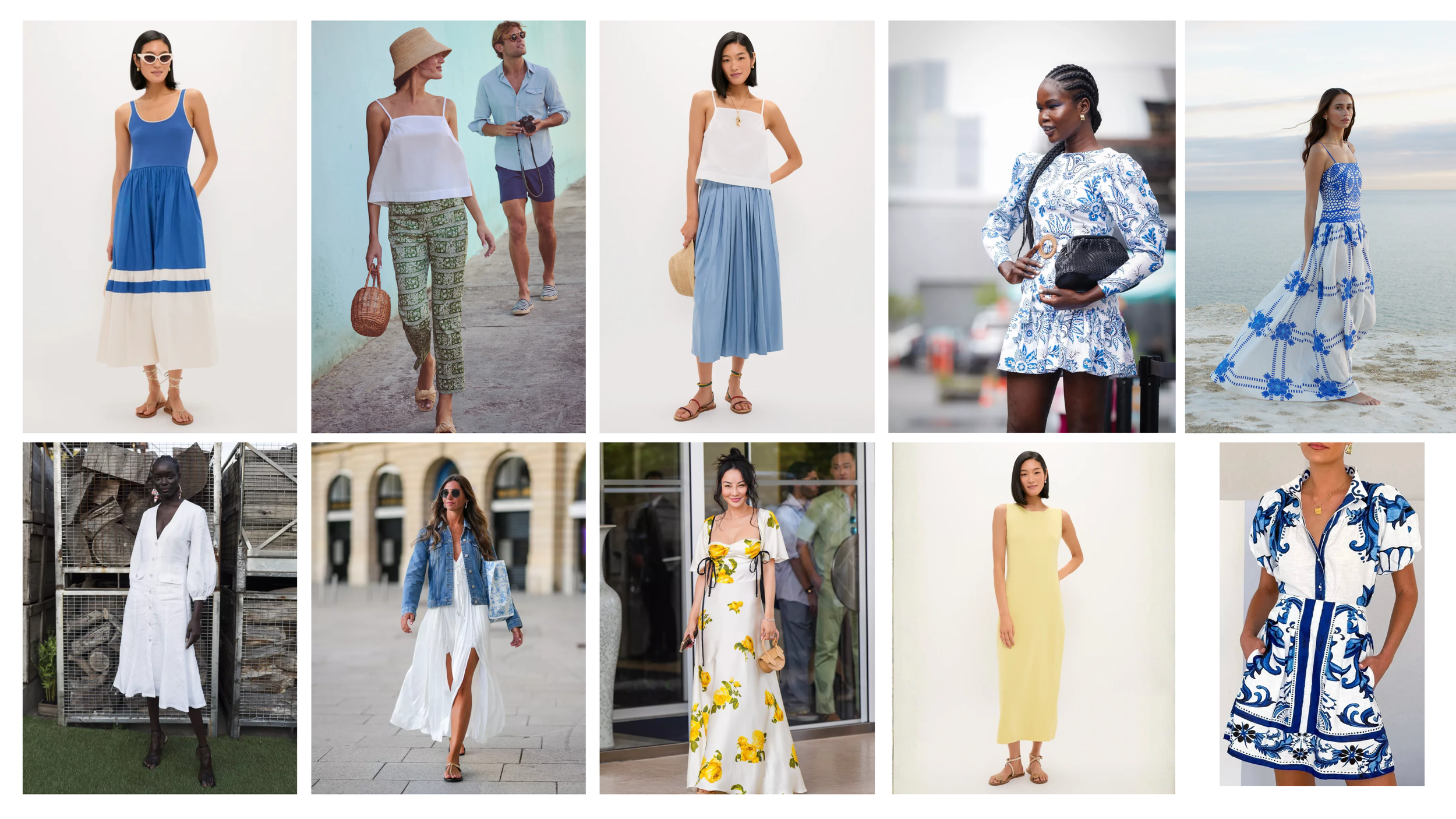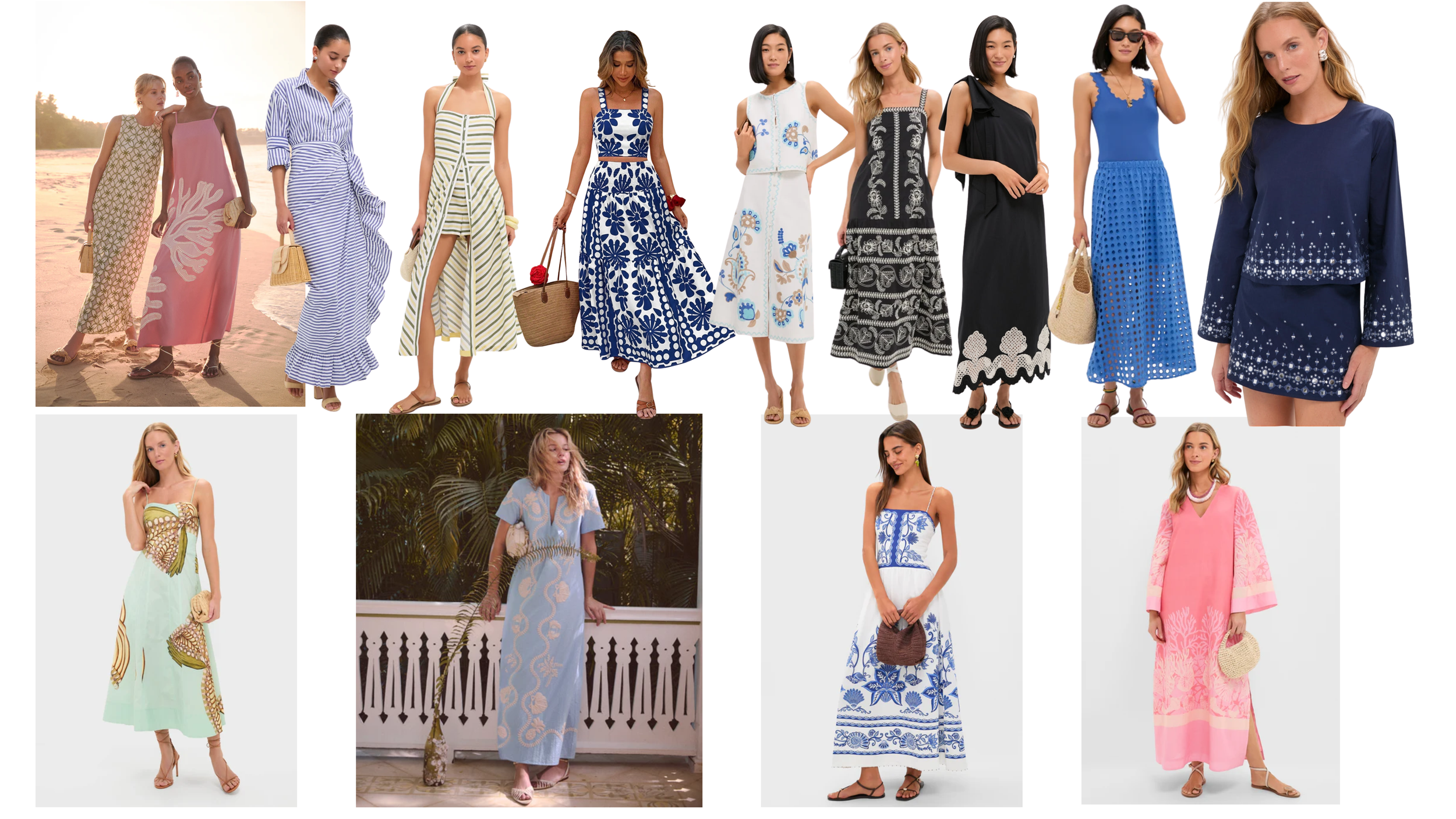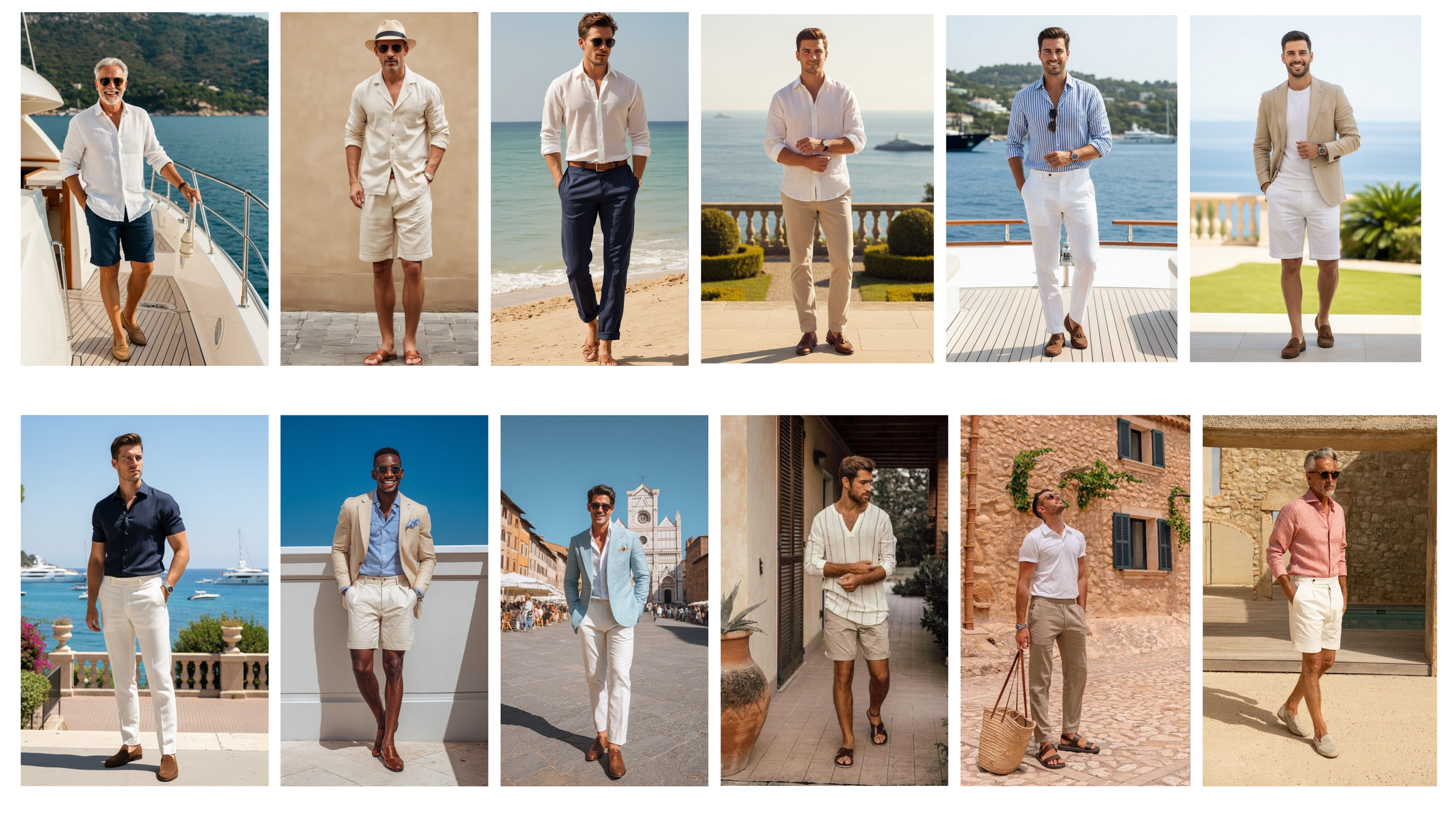 Picture yourself on vacation along the Amalfi Coast or strolling the streets of Capri as the sun begins to set. Think breezy linens, Mediterranean resort wear, flowing dresses, crisp shirts, strappy sandals, espadrilles, sun hats, and sunglasses. This is your invitation to have a little fun and dress the part.